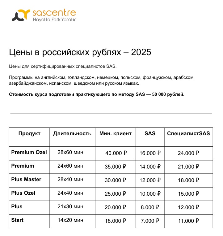 • Сертифицированный провайдер метода SAS (SAS Centre, Великобритания)